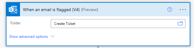The trigger action in Power Automate can then be ‘When an email is flagged’ but scoped to the ‘Create Ticket’ folder – meaning you can happily continue to use flags elsewhere in your mailbox without accidentally triggering the flow.